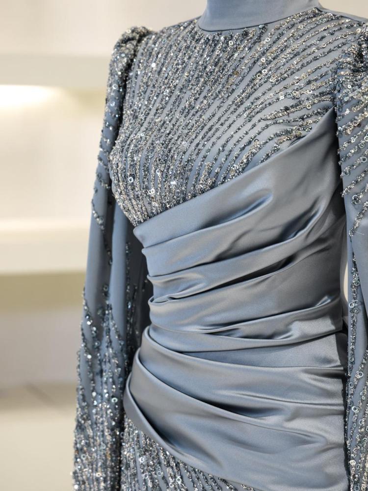 يتميز الفستان بخرز يدوي متقن يعكس الضوء بطريقة فريدة، مما يضفي لمسة لامعة وجذابة تجعلك تتألقين في أي مناسبة.